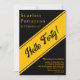 Este elegante convite de Aniversário preto e dourado é perfeito para um Aniversário moderno. o simples design apresenta uma elegante caligrafia dourada num fundo preto.