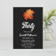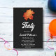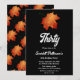 Este elegante convite de aniversário de outono é perfeito para um aniversário de outono moderno. A simples design apresenta folhas verdes de outono com elegante tipografia branca sobre fundo preto.