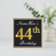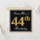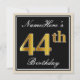 Convites Elegante, Preto, Faux Dourado 44 Aniversário + Nom