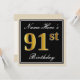 Este simples e bolsa mensageifesta de aniversario elegante de convite apresenta uma mensagem personalizada, como "Aniversário do 91ruas do Name-Here" (com a "91rua" com aparência falsa/imitação de cor dourada), dentro de uma área quadrada de cor preta com um contorno simples de fronteira. O nome está em um texto elegante, de cor branca, parecido com script, e pode ser personalizado. A parte traseira apresenta detalhes de convite personalizáveis. Um convite de aniversário como este poderia talvez ser usado ao convidar pessoas para uma festa de aniversário em prisão preventiva para alguém que comemora seu 90° aniversário. [~Z0000224]