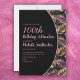 Elegante, moderno convite de aniversário negro 100º para mulheres com folhas rosa e douradas. Texto, fontes e texto são completamente personalizáveis, então, embora este cartão seja projetado para uma senhora que comemora seu centésimo aniversário, ele pode ser personalizado para qualquer idade. Entre em contato conosco para obter ajuda com a personalização ou para solicitar produtos correspondentes.