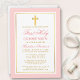 Elegante Blush Rosa e Dourado Primeiro Convite Comunitário com Cruz.