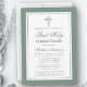 Moderno Elegante Verde e Silver Primeiro Convite à Comunhão com Cruz.