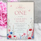 Torne o seu bebê no primeiro aniversário inesquecível com este belo convite à flor da primavera. O design é inspirado na boêmia e apresenta bonito flores silvestres e borboletas de aquarela, fazer-as na moda e charmosa. Use as ferramentas de design para personalizar o texto.