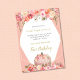 Aproveite este elegante, outono, primeiro aniversário floral para uma menina. Pinks, corais e florais amarelos com fundo rosa pincelado. Modelos fornecidos na frente e no verso. Luzes de cordas acesas atrás.