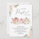 Um convite para chás elegante para uma menina que apresenta "uma doce abóbora está a caminho" na tipografia das cinzas modernas e uma escrita química com um inchaço cardíaco e aquarelas de abóboras e abóboras cor-de-rosa pastel e creme e buquês florais.