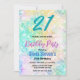 Um convite para comemoração aniversário de 21 anos glamouroso monograma para ela que você pode mudar para qualquer idade. Belo brilho azul esparso e iridescente verde brilhante design de fundo. O monograma e o texto do script de caligrafia do rico podem ser personalizados ou excluídos. Altere o estilo do texto, a cor, o tamanho, o espaçamento e a face da fonte. NOTA: Estes são gráficos impressos - sem brilho real, joias ou peças levantadas.