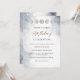 Um belo convite de aniversário com a habilidade de adicionar qualquer número de aniversário e até mudar o texto de "celebração" para "festa", "festa jante" "brunch" ou qualquer coisa que você quiser! Linda cor d'água, fundo celeste com céu, estrelas, fases da lua moldando sua informação. "Aniversário" na caligrafia moderna escrita à mão. Estrelas da noite, detalhes da lua e "doce" em folha de ouro falsa. Fundo celeste de cor aquática traseira do cartão com lua de cheio no centro com nome e evento. se necessário, você pode selecionar personalizar mais no final das caixas de texto modelo e fazer ajustes de texto. Parte da nossa coleção "White, Dourado e Silver Celestial Stars and Moon" com uma variedade de produtos de eventos coordenadores disponíveis. Visite a coleção inteira em: https://www.zazzle.com/collections/gold_white_and_silver_celestial_stars_and_moon-119446192561160871