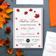 Este elegante convite de casamento outono é perfeito para um casamento moderno no outono. O simples design apresenta folhas ardentes com folhas elegantes, pretas e burgundy, com um fundo branco