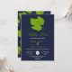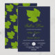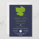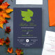 Este elegante convite de casamento outono é perfeito para um casamento moderno no outono. O simples design apresenta folhas verdes de outono com elegante tipografia branca e verde sobre fundo azul marinho.
