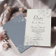 Junte-se a nós para uma celebração íntima do amor! Estamos encantados em convidá-los para nossa recepção de casamento de elopeamento, infundidos com elegância moderna e encanto rústico em azul empoeirado. Adorado com um cadáver floral de prata falsa e com um roteiro de caligrafia moderno, este convite define o palco de uma reunião inesquecível. Vamos se junta para celebrar o amor, o riso, e alegremente para sempre.