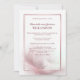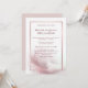 Um convite elegante para recepção pós-casamento com tons de rosa blush e penas.