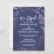 Este convite de recepção de casamento furtivo em dourado rosa e azul marinho é perfeito para uma festa de casamento furtivo sofisticada. O design apresenta uma moldura de folhas cor-de-rosa deslumbrante em um fundo azul escuro e é combinado com uma fonte cursiva deslumbrante. Os cartões de RSVP são vendidos separadamente.