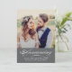 Anuncie o seu casamento para a família e amigos e convide-os para celebrar com uma recepção pós-cerimônia. Este cartão de foto cinza carvão apresenta uma foto dos noivos, um anúncio formal e detalhes sobre a cerimônia de casamento privada que ocorreu, e um convite no verso do cartão para uma celebração de recepção de casamento. As informações de RSVP estão incluídas. Todo o texto pode ser personalizado para atender às suas necessidades específicas. Muitas outras cores estão disponíveis na loja Plush Paper.
