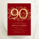 Convites Elegante Red Dourado 90 Birthday