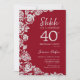Convite de festas aniversário de 40 anos de surpresa floral de prata vermelha. Design elegante com rosas, folha de falso prata e letra de script de tipografia. A Trendy convida o cartão perfeito para uma festa de na moda. Pode ser personalizado para qualquer idade. Impressos convites Zazzle ou modelo de impressão digital instantânea para download.