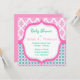 Elegante, na moda e adorável cor-de-rosa, gráfico teal, pontos florais e circulares, convites para duches de bebês.