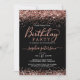 Na moda cor-de-rosa moderna Rose Dourada Sparkle Glitter Black Birthday Convite. Esta elegante modelo de convite de aniversário feminina feminina para adultos, qualquer idade, com uma caligrafia de tipo de letra com letra maiúscula tendenciosa com cor rosa pincelada, cor-de-rosa pincelada, bordas de ouro em fundo preto. Perfeito para qualquer idade (16º, 18º, 21rua, 40º, 50º, 60º 70 e 16º, 18º, 21º, 30º, 45º, 60º ou 70º, etc....) Festa de aniversário Dourada Rosa. Se você precisar de ajuda ou item correspondente, entre em contato comigo.