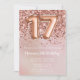 Elegante rosa gold 17º convite de aniversário para uma menina de 17 anos com escrevendo elegante e balões de folha divertida.