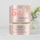 Convites Elegante rosa Dourada Glitter 50º Aniversário em