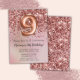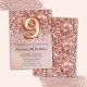 Elegante rosa gold 9º convite de aniversário para uma menina de 9 anos com roteiro elegante escrevendo com fonte preta e balões de folha divertida.