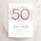 Ouro elegante de rosa e convite de aniversário branco 50º. Design feminina moderna personalizável, com sotaques botânicos rosas e ouro falso-brilhante-rosa. Simples cartão de convite floral perfeito para uma comemoração de um na moda. Personalize com seus próprios detalhes. Impressos convites Zazzle ou modelo de impressão digital instantânea para download.