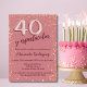 Convites Elegante Rosa Dourado Glitter aniversário de 40 an