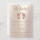 Este convite apresenta pés cor-de-rosa de menina com fundo metálico dourado. Você está tendo uma garota? Este convite é perfeito para você! O convite para chá de fraldas de pés de bebê desta menina está pronto para ser personalizado. Insira todas as informações específicas para o seu chá e local! A parte de trás do cartão tem pés de menina na parte de trás para um talento extra!