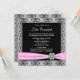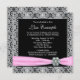 Bonito prata e preta com diamante rosa e arco cor-de-rosa e convite de aniversário preto. Este elegante convite de festas rosa e preto é facilmente personalizado para o seu evento. Observe que todos os designs de convite que você encontrará no Zazzle são gráficos impressos sem joias reais, arcos, levantados, gravados em relevo ou peças ou peças adicionadas.
