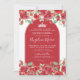 Convite Floral de Quinceañera. Este charmoso design de aquarela apresenta rosas vermelhas vibrantes, aliadas a verde-luxuosa e folhas, criando um olhar ousado e elegante para sua celebração. A frente exibe um arco vermelho impressionante, com uma mistura de fontes clássicas de serifa e script elegante em branco para um sofisticado contraste. Uma delicada coroa branca de tiara adiciona um toque real à design. A parte traseira apresenta um fundo branco nítido para um acabamento limpo e eterno. Totalmente personalizável, você pode ajustar as cores da fonte e o plano de fundo para corresponder ao seu tema. Disponível como convite impresso ou download digital para e-mail ou impressão local!