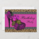 Lindos sapatos de salto alto cor fúcsia e renda preta com convite de aniversário modelo com tema de rosa e leopardo rosa neon. Este convite de festa de leopardo rosa elegante é facilmente personalizado para o seu evento, bastando clicar no botão "Personalize!" para começar a adicionar os detalhes do seu evento, estilo de letra, tamanho e cor da letra e texto. Por favor, note que todos os cartões e convites que você encontrará na Zazzle são gráficos impressos sem joias, laços, relevos, ou quaisquer outras partes ou peças adicionadas.