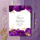 Celebre seu marco em estilo com este incrível convite Quinceañera com florais roxos vibrantes, sotaques de ouro e tipografia elegante. Inclui um marcador no verso para uma foto da aniversariante, acrescentando um toque pessoal a esta sofisticada design. Perfeito para uma celebração real e memorável.