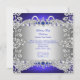 Convites Elegante Royal Blue Diamantes Silver Floral Birthd
