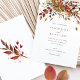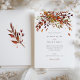 Este belamente feito convite de casamento apresenta uma rica tapeçaria de matizes autóctones, com um conjunto de folhas em tons de russet, burgundy, siena queimada e verde-oliva. O delicado estilo aquarela dá ao design uma sensação macia e naturalista, evocando a beleza serena do outono. Acentos de amoras de ocre e auburn adicionam um toque de textura orgânica, criando uma estética quente e convidativa. Apesar do seu estilo inspirado no outono, este convite versátil é perfeito para celebrar votos nupciais em qualquer estação. A sofisticada paleta e a elegante design oferecem um apelo eterno que pode complementar uma variedade de temas de casamento.