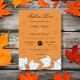 Este elegante convite de casamento outono é perfeito para um casamento moderno no outono. O simples design apresenta folhas de maple com elegante tipografia negra sobre fundo laranja queimado