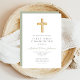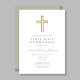 Sábio Elegante Personalizado Madeira Verde Atravessa Religioso Primeiro Convite Comunitário Sagrado. Parte do Elegante Sage Green Religian First Communion Suite com artigos de papelaria e acessórios do partido disponíveis.