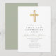 Convites Elegante Sage Cruz Verde Primeira Comunhão Religio