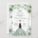 Elegante Sage Green & Silver Princess Mis Quince Convite Mis Quince 15 Anos, 16º Aniversário Borboleta.
