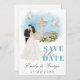 Anuncie seu dia especial com nosso Elegante Salve o cartão de Data. Apresentando uma ilustração romântica da Noiva e do Groom em uma fonte pitoresca com uma encantadora flor adornada e duas pombas graciosas, esta design estabelece o tom perfeito para o seu casamento. O verso mostra um fundo de ouro luxuoso com pombas adicionais, simbolizando amor e unidade. Personalize com seus nomes e data de casamento para torná-lo exclusivamente seu. Perfeito para casais que buscam uma maneira sofisticada e memorável de compartilhar suas grandes notícias