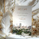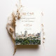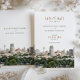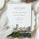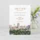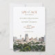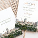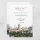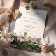 Anuncie seu próximo casamento com este sofisticado convite da "Salve-a-Data" com a estonteante linha do horizonte de San Antonio, Texas. O cartão mostra uma bela ilustração aquosa da paisagem vibrante da cidade de San Antonio, destacando a sua única mistura de arquitetura histórica e moderna em meio a um verde-luxuoso. O texto é apresentado elegantemente numa mistura de fontes clássicas de serifa e guião, usando cores como ouro mudado, verde-oliva e terra quente. Perfeito para casais planejando um casamento urbano contemporâneo, este convite captura a essência do charme de San Antonio com elegância artística.