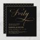 Convites Elegante Script 40 Black Dourado aniversário de 40