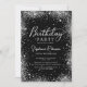 Convites Elegante Script Black Silver Glitter 10º Aniversár