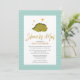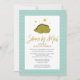 Celebre a chegada do seu bebê precioso com este elegante, chic, bonito e sonhador "Chá por Mail Invitation", com um dinossauro adormecido verde sob as estrelas à frente. O título apresenta folhas de ouro como caligrafia. O plano de fundo apresenta o padrão de seta azul azul turquesa. Todos os textos estão pré-organizados para que você personalize fácil e rapidamente com os detalhes do seu chá de fraldas.