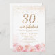 Escrito moderno "30 e fabuloso", brilho fino em ouro de tendência e design floral cor-de-água rosa pincelada, elegante e na moda, convites de festas aniversário de 40 anos excelente.