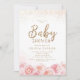 Script moderno de "chá de fraldas", brilho de ouro falso de tendências e design floral cor-de-água rosa pincelada, elegante e na moda, convites para chuveiros de bebês excelentes para bebês.
