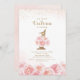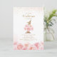 A moderna moda brilha dourada e a cor-de-água rosa pincelada floral com uma grande no centro, elegante e na moda, convites de excelente de primeiro aniversário para meninas.
