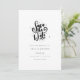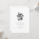 Este cartão de anúncio de save the date em script elegante preto e branco apresenta um save the date estiloso em script com bolinhas pontilhadas decorativas que são definidas acima dos seus detalhes em um texto elegante.