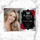 Convites Elegante Silver Black Rosa vermelha Foto 50th Birt