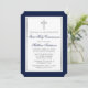 Convites Elegante Silver Cross Blue Primeira Comunhão