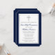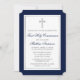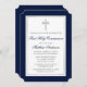 Marinho Elegante Blue e Silver Primeiro Convite da Comunidade com Cross. Moldura prateada. Silver Cross. Estilo do Bilhete.